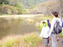 光徳駐車場はおすすめP泊地として、 キャンピングカーのみなさんに親しまれているところです。 とても自然環境の良い静かなところで、 また管理されたきれいな洗面所もあります。 夜、キーン、キーンという音が聞こえましたが、 翌朝、お隣りのキャンピングカーの人が シカの鳴き声だよと教えてくれました。 朝起きてカセットコンロでコーヒー沸かして1杯。 おいしい空気とおいしいコーヒーっていいですね。 それから光徳牧場と光徳沼を散歩してきました。 とても心地良い散歩ができました。 標高が1500mくらいあるので、まだ9月ですが、 一部で紅葉が始まっていました。 ひと歩きした後、光徳駐車場を出発して湯滝に向かいました。 定番ですがななめに下る流れが印象深い滝ですね。 頂上から見下ろせるのもまた良いです。 湯滝を見学した後に、湯元温泉に行きました。 湯元温泉にはりっぱな無料の足湯がありました。 9月も終わりとなると湯元は結構涼しいです。 足湯でちょうどよく温まったところで、 次に源泉の湯畑を通って温泉寺に向かいました。 温泉寺は温泉入浴ができるお寺です。 立派な日帰り温泉施設を想像してましたが、 行ってみると本当に素朴な現役のお寺です。 看板などはなく、小さく「本日入浴できます。」 と札がでてるだけです。 また入口では「ご用の方はピンポンを押してください。」 と出ていて、入っていくのが申し訳ないくらいです。 思いきってピンポン押すと、感じのいいおばさんとお姉さんが 各グループを丁寧にお風呂へ案内してくれました。 お風呂は想像よりとても小さく、5人も入るといっぱいです。 普段お寺で使ってるお風呂を旅人に貸してるって感じでしょうか? お風呂は熱く子ども達はなかなかはいれませんでした。 それでもちょっと入るだけでもよくあたたまるお風呂でした。 お風呂から出てくるとおせんべいが用意されていて、 縁側でお茶をすすりながら、みなで食べました。 縁側で黙って静かにたべるせんべいが至福の時間でした。 千客万来という感じでなく、素朴なところがとてもいい味わいです。 時間に押されて泣く泣く出発。 温泉寺を出発して赤沼まで下り、戦場ヶ原を少し散策しました。 当初5分くらい散歩と言っていたのですが、 木の線路を走り出した子ども達を止められず、 子ども達を追いかけてどんどん歩くことに。 行けども行けども追いつかず、少々不安になったところで、 シカを発見したとかで、見知らぬおじさん達のグループと すっかり意気投合してる子ども達を発見。 シカりつけるより前に子ども達が次々シカの話をしてくるので、 シカるタイミングを逸してしまい、 シカたなく「良かったね。」と返事をしてしまう始末。 子ども達にしてやられた感じもするが、 「シカ」を見て興奮してる子ども達を見てると、 まあ良かったのかなあなんて思ってしまうのでした。 予想以上に歩いてお腹がすいたところで、 一部から「ソースカツ丼」が食べたいとの声が・・ まさか、昨日行ったばかりのお店に・・ といいつつ行ってしまいました。浅井精肉店。 昨日とは逆に私はロースカツ定食、お友達はソースカツ丼、 ロースカツも肉厚でやわらかくておいしかったです。 またまたお腹いっぱい食べて日光を満喫(満腹)して 帰路につきました。 |