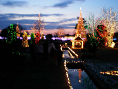 クリスマスに群馬県の足利フラワーパークに行ってきました。 藤の花で有名な足利フラワーパークですが、 クリスマスには園全体が電飾で飾られて、とてもきれいです。 インターネットで割引券を印刷して、越谷を昼過ぎに出発。 佐野のショッピングセンターでちょっと遊んで、 そしてケーキを買って、足利フラワーパークに5時ころ着きました。 さすがにクリスマスイブとあって、たくさんの人が来ていましたが、 大混雑というほどではありませんでした。 入口でプレゼント引き換え券をもらったので、引き換え場所に行ってみると、 サンタさんがいて、風船をプレゼントしてくれました。 サンタさんから直接もらったのははじめてだったので、子ども達はおおはしゃぎでした。 園内には巨大なツリーの他、お花や、お月様や、ベンチに馬車など、 いろんな電飾があり、それぞれで記念撮影ができるようにもなっていて、 とても楽しかったです。 また、藤の花を模した電飾はとてもきれいでした。 子ども達も大満足したところで、 キャンピングカーに戻り、ケーキを食べたり、ゲームをしたり、 プチクリスマスパーティーをしました。 そして、子ども達が眠くなったころ、家路につきました。 |