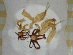 千葉の保田港へ釣りに行って来ました。 お正月はおいしいもの食べて、温泉入ってのんびりしたいとのことで、 それなら保田のばんやでしょう!ということで、 インタネットで調べてみると・・やってるやってる 正月もやってる!ということで、 またまた来てしまいました。ばんや食堂。 おじいちゃん、おばあちゃんといっしょに のんびりとおいしい魚料理に舌鼓を打ちました。 せっかく保田まで来たのだから、釣りもやってみようとのことで、 この時期じゃあまり期待もせず海を覗くと、 小さい魚がいっぱい泳いでいるではありませんか。 小さい仕掛けを落としてみると、釣れる釣れる ふぐの赤ちゃんがたくさん釣れました。 しばらくふぐ釣りをしていると、 となりの岸壁では立派なウミタナゴが釣れているとの情報をキャッチ。 ふぐちゃんは海に戻して、さっそく移動。 行ってみるとちょうどひとりの人が大きなイカを釣り上げていました。 そして、となりの人も違う種類のイカを釣り上げてます。 ほーっイカが釣れるんだ! さっそく我々もイカ狙いチームとその他チームに分かれて釣りを再開しました。 が、期待に反してその他チームが好調です。 仕掛けを入れると次々に反応が。 メゴチ、メゴチ、メゴチと釣れて、次になんと予想外のタコがかかりました。 大きさはにぎりこぶしくらいですが、立派なタコです。 また、メゴチ、メゴチ、メゴチ、そしてもう1匹タコが釣れました。 ちっちゃいけどタコが釣れたのはうれしかったです。 合計でメゴチが10匹くらいにタコが2匹釣れました。 イカチームは腕がいたくなるほど、仕掛けを遠投しましたが、 結局イカは釣れませんでした。 夕方になったので、納竿して帰路に。 タコとメゴチはから揚げにしていただきました。 どちらも見た目は悪いですが、たいへん美味しかったです。 |