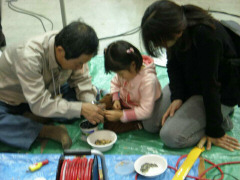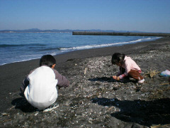 保田の道の駅「きょなん」でP泊、 ばんや食堂で朝定食(\580)を食べました。 (朝7:00〜朝定食やってます。) それから保田の水仙ロードを少し散策しました。 いかにも日本の里山という雰囲気がとてもいいところでした。 それから房総の白浜へ行って花摘みをしました。 この日東京は北風ぴゅーぴゅーのようでしたが、 さすがに白浜はコートのいらないポカポカ陽気でした。 菜の花もさいていましたよ。 ポピーなどたくさんの種類のお花を摘んできました。 (近くのお店で売ってるポピーより安く花摘みさせてもらったのに、 さらにおまけしてくれてありがとうおじさん!) 次に子ども達の希望で、館山の国民休暇村前の浜で貝拾いをしてきました。 以前にこちらの休暇村でイルカの耳の骨などの貝拾いのお話しを聴いたのが、 とても印象に残っていたようです。 子ども達は夢中になって貝を拾ってました。 大人たちは浜にレジャーシートを敷いて、しばし休息。 2月なのにポカポカ陽気で冗談でなく日焼けしそうでした。 夜、道の駅「きょなん」に戻り家族で天体観察会を行いました。 昨日、先生に土星が見ごろと聞いてきたので、土星を探すと・・ それらしいのがありました。とても明るく輝いてます。 場所はわかったのですが、それからがたいへんでした。 狙いを定めた土星らしき星。それがなかなかレンズの中に入ってきてくれません。 補助レンズの調整をなんどもやりなおし、 首を痛くしながら星を何度も探し続け、 1時間半後にようやくレンズの中に星をみつけることができました。 かぜでゆらゆらゆれる中、小さいながらもはっきりと土星の輪が見えたときには、 子どもばかりか私も感動しました! 自分と宇宙空間と土星を直接線で結んだことで、 自分が宇宙の住人であることを実感しました。 土星は3月くらいまで見ごろだそうです。 そのまま道の駅「きょなん」にP泊し、翌日帰宅。 |