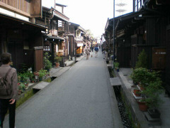初日の馬篭の朝の散歩がたいへんよかったので、 高山へも同じように朝一番に入りました。 7:00高山市内に。車内で朝食をとる。 8:00朝市でショッピング。古い街並み散策。こちらも馬篭と同様、朝8時台からお店も開店しはじめているようですね。さすがに田舎は早い! 朝の散歩はホントに気持ちいいですよ。 宮川朝市で買い食いしたりショッピングしたあと、 陣屋にもどり陣屋を見学しました。陣屋ではボランティアの方が解説をしているのにくっついて歩いていたのですが、 ボランティアの解説(語り部)を聴きながら見学はおすすめです。 納得したり、関心したり、涙しそうになりながら見学できます。 その後、古い街並みで喫茶店に入りお茶をしていたら、 早いものでお昼時になってしまいました。 この時間になると古い街並みも大混雑してきて、さながら原宿の竹下通りのようです。 12:30に高山出発。13:30飛騨古川着。 飛騨古川は高山を少しこじんまりさせたような街です。 高山と違って、こちらは混雑はしてませんでした。 市役所前の駐車場に車をとめて、 古川祭り会館に行きました。 3Dシアターで古川の祭りを体験したり、 からくり人形をあやつったり、大太鼓をたたいたり 子ども達が結構楽しそうでした。 その後、土蔵白壁の街をお散策しました。 とても静かできれいで雰囲気のいい街でした。 短い時間の滞在でしたが、メンバーはみな高山に負けず劣らず良かったと評判でした。 この日は古川にある季古利という町営のホテルに宿泊しました。 夕食は悲願?の飛騨牛にほうばみそ、川魚などをいただきました。 お料理のたいへんおいしいホテルでした。 翌日は飛騨古川を8:30に出発。途中お土産屋に寄るなどして、158号を東進し、平湯を経由して松本へ。 11:00ころ松本通過。 鹿教湯を経由して千曲川ビューライン通って佐久ICに13:30ころ到着。 佐久IC前の「おぎのや」で釜飯などを食べたのち、長時間ドライブにそろそろ子どもが飽きてきたころなので、 佐久平PAの昆虫体験館に立ち寄りました。 昆虫体験館ではヘラクレスなどにさわれて、息子が大喜びしてました。 夏にくるとこの辺りで昆虫がたくさん採集できるよううで、 夏に再来訪するようファーブルおじさんに強くすすめられました。 15:30ころ佐久平を出発。途中関越道で10kmの渋滞にあったものの、ほぼ予定どおりに東松山に17:00到着。 岐阜旅行は無事終了しました。 |