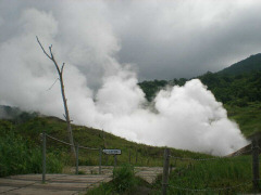 8/18道の駅「名水の郷きょうごく」で朝を迎えます。 今日もどんより雲っていて、期待した羊蹄山の景色が見れず残念でした。朝みなで名水「羊蹄のふきだし湧水」を飲みに行きました。こちらは日本の名水百選にも選定された名水がたくさん湧き出してしるところです。湧水というと「こんこんと湧く」というイメージですが、こちらはドバドバとものすごい量が湧出しています。みなさん18リットル缶に入れて持っていっていますが、がんがん汲んでも足りなくなる心配ないようです。私たちもペットボトルに入れて帰りました。こんな良いお水の近くに生活できるのはうらやましいですね。 名水の郷きょうごくを出発して、私のリクエストで来年サミットが開かれる予定のザ・ウィンザーホテル洞爺リゾートの見学に行ってきました。サミット会場に選定される前から、山の上に立ち異様な存在感を放つこの建物が、(北海道に来るたびに)気になっていたのです。そこで今回ぜひということで見学に行ったのですが、結果的には「当局の指導により、見学お断り」で中には入れませんでした。またキリがでていて視界も悪く、景色も見えず残念な結果になりました。 ウィンザーホテルはあきらめ、洞爺湖温泉近くの西山火口散策路に行きました。ここは2000年に噴火によって被災した建物や道路などをそのまま保存してある生々しい散策路です。散策路の脇からはいまでも噴気が出ていて、地面に手を当てると熱くなっています。(年々熱くなっているとのこと。こわっ!)破壊されたお菓子工場などが強烈でした。噴火のときはひどい被災でしたが、それも観光化してしまう洞爺湖温泉の方々のたくましさを感じました。帰りに売店でとうきびを食べました。生食でもおいしいとのことで、食べてみましたがほんとに甘くておいしいとうきびでした。 ここからは函館へ向けての帰り道。楽しい旅も終わりの感じがして、この街道の帰り道はいつもたそがれ感いっぱいです。 お子様向けのメインイベント、噴火湾パノラマパークに寄って、公園で遊びました。 こちらの公園は、前回連れてった子供達が北海道どこが一番良かった?と尋ねたらまっさきにあげた場所で、子供達大人気の公園です。他にもっと広い公園もあると思うのですが、こちらの公園は子供達にとって他にはない魅力を放っているようです。たっぷり遊ばせたつもりですが、まだまだ遊び足りない様子。先の行程が心配なのでいやがる子供また大人のなんとか尻をたたいて出発しました。 後はまっすぐ帰り道です。 函館ラーメンを食べて夜行のフェリーにのり青森へ。 そのまま夜行で高速にのり翌19日15時ころ越谷に到着しました。 |