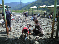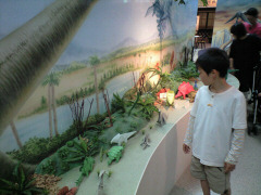 福井県は恐竜の里です。今回は子供達向けに恐竜のツアーを組みました。家内は少し不満そうでしたが・・ 最初に向かったのは手取湖畔にある白峰恐竜パーク、手取湖畔にある化石の発掘体験ができる公園です。 実際の出土場所ではなく、出土場所から持ってきた岩石を割って化石を探す体験です。 体験場の入口で防護めがねと軍手とハンマーを貸してくれます。ハンマーでキンコン、カンコンと石を割って化石を探して行きます。5〜6個に1個くらいでしょうか?探せば植物の化石らしきものは結構出てきます。しかし、決定的にきれいな葉っぱの形をした化石はなかなか見つかりません。ある程度気に入った化石をキープして、もっと良いものを探して、あっちでキンコン、こっちでキンコン。結構重労働です。だんだん石を割るごとに腰に手を当て、伸びをするようになります。 もうやめようか、と思いながら大きな石を割ってみたところ、本日一番きれいに植物の形が入った化石が出てきました。(やめられない・・) 見つけた化石は植物の化石で10cm角の大きさ1個までなら持って帰れるとのこと。 大きすぎたので、10cm角におさまるように、またキンコンカンコン形を修正していきます。(これも結構くたびれます。) ところが、誤って一番きれいな部分をハンマーで破壊してしまいました。くっー! がっくり、と力が抜けたところでギブアップ。がんばりすぎて手には水ぶくれができてしまいました。 少し不満は残りましたが、この化石をひとつ持って帰ることにしました。(子供をやめさせるのがたいへんでした。) 化石発掘は体力要りますが、とても楽しく、またちょっとした遊具や公園もあるので、白峰恐竜パークはおすすめです。(GWでもそれほど混雑していませんでした。) 白峰恐竜パークを出発、今度は勝山にある別の福井県立恐竜博物館へ行きました。 こちらの博物館は出来立てなのでしょうか、きれいでとても立派な施設です。 GWということで、入口から駐車場が渋滞するなどこちらはとても混雑していました。 展示物も本格的で映像シーンもとてもリアルで印象に残りました。大人も結構楽しめます。 しかし一番長く滞在したのはお土産コーナー。通勤電車なみの混雑の中、子供達は夢中でお土産を探しました。子供達は恐竜のプラモデルなどをおこずかいで買っていきました。 次に県立博物館を出発して福井市内に。福井市内のヨーロッパ軒でソーツかつ丼を食べました。 事前にネットと調べて、おすすめグルメだったので、うる覚えの地図をたよりに探しました。 こっちの方かなとおよその方向で進んで信号待ちをしてると真横に「ヨーロッパ軒」の看板が! あった!でもこんなところだっけ?ホームページで見た場所とちょっと違うかな? と半信半疑のまま入店して聞いてみると、ここは本店とは違う直営店とのこと、 「本店は今、混雑していると思いますよ。」とのことで結果的に良かったようです。 持ち帰りのお弁当屋さんのような感じですが、小さなカウンターとテーブルが1卓あり、その場でも食べられます。 ソースかつ丼はケンタのころもで揚げたようなかりっと香ばしく、おいしかったですよ。 埼玉からはるばるきたことを説明すると、子供達におまけのおもちゃまでくれました。ありがとうございました。 お腹を満たしたところで、三国温泉の「ゆあぽーと」という日帰り温泉に入りました。 九頭竜川の一番河口にあり、海の景色が良い温泉施設です。 ちょうど日没の時間だったので、海に日が沈むところが見えました。 |