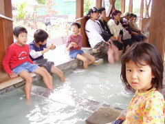 光徳駐車場はおすすめP泊地として、 キャンピングカーのみなさんに親しまれているところです。 とても自然環境の良い静かなところで、 また管理されたきれいな洗面所もあります。 夜、キーン、キーンという音が聞こえましたが、 翌朝、お隣りのキャンピングカーの人が シカの鳴き声だよと教えてくれました。 朝起きてカセットコンロでコーヒー沸かして1杯。 おいしい空気とおいしいコーヒーっていいですね。 それから光徳牧場と光徳沼を散歩してきました。 とても心地良い散歩ができました。 標高が1500mくらいあるので、まだ9月ですが、 一部で紅葉が始まっていました。 ひと歩きした後、光徳駐車場を出発して湯滝に向かいました。 定番ですがななめに下る流れが印象深い滝ですね。 頂上から見下ろせるのもまた良いです。 湯滝を見学した後に、湯元温泉に行きました。 湯元温泉にはりっぱな無料の足湯がありました。 9月も終わりとなると湯元は結構涼しいです。 足湯でちょうどよく温まったところで、 次に源泉の湯畑を通って温泉寺に向かいました。 温泉寺は温泉入浴ができるお寺です。 立派な日帰り温泉施設を想像してましたが、 行ってみると本当に素朴な現役のお寺です。 看板などはなく、小さく「本日入浴できます。」 と札がでてるだけです。 また入口では「ご用の方はピンポンを押してください。」 と出ていて、入っていくのが申し訳ないくらいです。 思いきってピンポン押すと、感じのいいおばさんとお姉さんが 各グループを丁寧にお風呂へ案内してくれました。 お風呂は想像よりとても小さく、5人も入るといっぱいです。 普段お寺で使ってるお風呂を旅人に貸してるって感じでしょうか? お風呂は熱く子ども達はなかなかはいれませんでした。 それでもちょっと入るだけでもよくあたたまるお風呂でした。 お風呂から出てくるとおせんべいが用意されていて、 縁側でお茶をすすりながら、みなで食べました。 縁側で黙って静かにたべるせんべいが至福の時間でした。 千客万来という感じでなく、素朴なところがとてもいい味わいです。 時間に押されて泣く泣く出発。 温泉寺を出発して赤沼まで下り、戦場ヶ原を少し散策しました。 当初5分くらい散歩と言っていたのですが、 木の線路を走り出した子ども達を止められず、 子ども達を追いかけてどんどん歩くことに。 行けども行けども追いつかず、少々不安になったところで、 シカを発見したとかで、見知らぬおじさん達のグループと すっかり意気投合してる子ども達を発見。 シカりつけるより前に子ども達が次々シカの話をしてくるので、 シカるタイミングを逸してしまい、 シカたなく「良かったね。」と返事をしてしまう始末。 子ども達にしてやられた感じもするが、 「シカ」を見て興奮してる子ども達を見てると、 まあ良かったのかなあなんて思ってしまうのでした。 予想以上に歩いてお腹がすいたところで、 一部から「ソースカツ丼」が食べたいとの声が・・ まさか、昨日行ったばかりのお店に・・ といいつつ行ってしまいました。浅井精肉店。 昨日とは逆に私はロースカツ定食、お友達はソースカツ丼、 ロースカツも肉厚でやわらかくておいしかったです。 またまたお腹いっぱい食べて日光を満喫(満腹)して 帰路につきました。 |