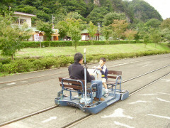 病気の療養を兼ねて、お父さん、お母さんといしょに 草津へ温泉旅行に行ってきました。 ちょうど、発達中の低気圧が通り過ぎた後で、 前日の夜まで大雨で出発が危ぶまれましたが、 当日はうそのような静かな朝を向かえ、出発することができました。 (ところが草津はこのあと大荒れの天気に・・) 埼玉を朝7時に出発。17号バイパスを北上して、 18号を軽井沢方面に入り、横川に10時半ころ到着。 お父さん、お母さんのための旅行ですが、まずはお子様タイム! 「碓氷峠鉄道文化むら」に行きました。 ここは本物の電気機関車の運転体験ができる 廃線となった横川〜軽井沢間の跡地を利用した鉄道テーマパークです。 ミニSLや鉄道模型、シュミレーターやトロッコ電車など いろいろ施設や遊具があり結構楽しめます。 昔なつかしい車両も多く、意外にもお父さん、お母さんも 楽しんでいたようでした。 写真は手で押して走るトロッコです。 (電気機関車運転は休日は何ヶ月先まで予約でいっぱい? 日本でここだけとあって、とても人気のようです。) ひととおり遊んだところで先もあるので出発することに。 最後はお土産のおもちゃと買う買わないで ケンカしながら退園といういつものパターン! (「二度とテーマパークなんて来るもんか!」とこれもいつものパターン。) すぐ近くにある「峠の釜飯」やさんで釜飯を食べて、横川を出発しました。 さてさて、我が家のアレン号は碓氷バイパスを登れるか心配でしたが、 ずっと二足歩行ならぬ2速走行でなんとか登ることができました。 碓氷バイパスはほとんどの部分で登坂車線があるので精神的に助かります。 頂上まで登りきって一安心、ちょっとくだったら軽井沢到着です。 軽井沢に着いて、旧軽井沢銀座を散策をはじめたところ、 天気が急にあやしくなってきました。 陽が差しているのに、シャワーのような雨が、 降っては止んで、降っては止んでと続き、 散歩しているだけでもびちょびちょに。 お散歩は早々に切り上げて、早めに草津の温泉に行くことにしました。 北軽井沢を経由して草津までは意外にあっさりと到着。 草津に到着してその足で「大滝の湯」に向かいました。 「大滝の湯」は草津でもっともポピュラーな日帰り温泉施設です。 お風呂はいかにも草津らしい白濁の温泉で、 建物も昔風の造りがとてもいい感じです。 湯加減もちょうどよく、入ると「うーーーっ」と思わず声がでてしまいます。 露天風呂や「あわせ湯」を交互にじっくり入りました。 大滝の湯で食事も済ませて、 早めに今夜のP泊地道の駅「草津運動茶屋公園」に移動しました。 ところが道の駅はP泊の車などで満車状態。 ぐるぐるまわった挙句に駐車スペースでない脇のスペースに 縦列駐車でなんとか停めることができました。 このころから天気がひどいことになってきました。 冷たい北風がビュービュー台風なみに吹いてきまます。 それとともに横殴りの雨がシャーシャーと窓をたたきつけます。 これはなかなか寝れないかなと考えていた記憶まではあるのですが、 その後は布団の中で快眠していたようです。 |