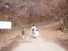12/2(土) 仕事を終えて、夕方5時に埼玉出発。 首都高が予想外の渋滞で大月インターを夜10時に降りる。 そこから、139号を走って道の駅なるさわへ。11時着。 併設されている温泉に入ろうを思っていたのですが、 間に合わず(夜10時まで)そのままP泊。 ここは標高が1000mくらいだと思うのですが、 夜は寒かったです。朝、窓をふいたら内側も凍っていました。 12/3(日) 早朝、寒さで目を覚ます。 暖かいお茶を飲み、DVD見ながら夜明けを待つ。 ここの道の駅はとてもきれいで、かつ温泉も併設されていてとても人気があるようですが、 さすがにこの時期はすいていました。 朝、道の駅から見た富士山がとてもきれいでしたので、 写真を1枚パチッ! 今日のお目当ては紅葉台のハイキングです。 朝8時紅葉台のドライブインの駐車場へ移動し、 そこに車をとめて出発。 2枚目の写真はハイキングコースの入口です。 ハイキングコースの入口には木曽馬の牧場があって、 お馬さんが小屋から「いらっしゃい」とあいさつしてくれます。 登りはじめるとすぐに東海自然歩道に入ります。 紅葉台の山頂は当会自然歩道沿いにあります。 途中、リスを見つけたりはしゃいでいるうちに あっという間に紅葉台の山頂に。 本来は山頂から富士山のすばらしい眺望が見れるはずだったのですが、 残念ながら雲に覆われて見れませんでした。 (ちょっと前にふもとでは全容が見えていたのに・・) 4歳の娘もまだまだ余力があったので、 紅葉台からさらにちょっと先の三湖台まで登ることにしました。 ところがここから先は霜が解けたぬかるみ場所が 所々にあり、足が泥だらけに。 家族4人くつとズボンをどろどろにしながら三湖台へ到着。 こちらはさらにすばらしい富士山眺望の他に富士五湖の うち3つの湖が見れる場所でそう名づけられたそうです。 しかしながら、急な曇天でこちらも富士山と山中湖が見れませんでした。 眺望の良かった南アルプス方面を背に記念撮影! さらに先にもっともっと富士山の眺望が良くて、 富士五湖の全てが見れる五湖台という山があるそうなのですが、 霜への恐怖のため登頂を断念。 (娘が余力十分だったので残念でした。) 帰り道は陽が高くなったため、よけいにぬかるんでいて、 子ども達はさらに服まで泥だらけになってしまいました。 そのまま車に乗れない(乗せたくない)ので、 登山道入口の売店でみそ田楽を食べながら、 ズボンとくつが乾くのを待ち、こすって落とすなどしてやっとこさ乗車。 途中地元の野菜などの買い物をして帰路に。 埼玉に午後4時ころ到着。 |