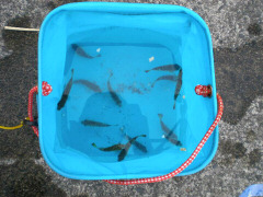 千葉の保田港へ釣りに行って来ました。 お正月はおいしいもの食べて、温泉入ってのんびりしたいとのことで、 それなら保田のばんやでしょう!ということで、 インタネットで調べてみると・・やってるやってる 正月もやってる!ということで、 またまた来てしまいました。ばんや食堂。 おじいちゃん、おばあちゃんといっしょに のんびりとおいしい魚料理に舌鼓を打ちました。 せっかく保田まで来たのだから、釣りもやってみようとのことで、 この時期じゃあまり期待もせず海を覗くと、 小さい魚がいっぱい泳いでいるではありませんか。 小さい仕掛けを落としてみると、釣れる釣れる ふぐの赤ちゃんがたくさん釣れました。 しばらくふぐ釣りをしていると、 となりの岸壁では立派なウミタナゴが釣れているとの情報をキャッチ。 ふぐちゃんは海に戻して、さっそく移動。 行ってみるとちょうどひとりの人が大きなイカを釣り上げていました。 そして、となりの人も違う種類のイカを釣り上げてます。 ほーっイカが釣れるんだ! さっそく我々もイカ狙いチームとその他チームに分かれて釣りを再開しました。 が、期待に反してその他チームが好調です。 仕掛けを入れると次々に反応が。 メゴチ、メゴチ、メゴチと釣れて、次になんと予想外のタコがかかりました。 大きさはにぎりこぶしくらいですが、立派なタコです。 また、メゴチ、メゴチ、メゴチ、そしてもう1匹タコが釣れました。 ちっちゃいけどタコが釣れたのはうれしかったです。 合計でメゴチが10匹くらいにタコが2匹釣れました。 イカチームは腕がいたくなるほど、仕掛けを遠投しましたが、 結局イカは釣れませんでした。 夕方になったので、納竿して帰路に。 タコとメゴチはから揚げにしていただきました。 どちらも見た目は悪いですが、たいへん美味しかったです。 |