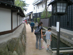 初日の馬篭の朝の散歩がたいへんよかったので、 高山へも同じように朝一番に入りました。 7:00高山市内に。車内で朝食をとる。 8:00朝市でショッピング。古い街並み散策。こちらも馬篭と同様、朝8時台からお店も開店しはじめているようですね。さすがに田舎は早い! 朝の散歩はホントに気持ちいいですよ。 宮川朝市で買い食いしたりショッピングしたあと、 陣屋にもどり陣屋を見学しました。陣屋ではボランティアの方が解説をしているのにくっついて歩いていたのですが、 ボランティアの解説(語り部)を聴きながら見学はおすすめです。 納得したり、関心したり、涙しそうになりながら見学できます。 その後、古い街並みで喫茶店に入りお茶をしていたら、 早いものでお昼時になってしまいました。 この時間になると古い街並みも大混雑してきて、さながら原宿の竹下通りのようです。 12:30に高山出発。13:30飛騨古川着。 飛騨古川は高山を少しこじんまりさせたような街です。 高山と違って、こちらは混雑はしてませんでした。 市役所前の駐車場に車をとめて、 古川祭り会館に行きました。 3Dシアターで古川の祭りを体験したり、 からくり人形をあやつったり、大太鼓をたたいたり 子ども達が結構楽しそうでした。 その後、土蔵白壁の街をお散策しました。 とても静かできれいで雰囲気のいい街でした。 短い時間の滞在でしたが、メンバーはみな高山に負けず劣らず良かったと評判でした。 この日は古川にある季古利という町営のホテルに宿泊しました。 夕食は悲願?の飛騨牛にほうばみそ、川魚などをいただきました。 お料理のたいへんおいしいホテルでした。 翌日は飛騨古川を8:30に出発。途中お土産屋に寄るなどして、158号を東進し、平湯を経由して松本へ。 11:00ころ松本通過。 鹿教湯を経由して千曲川ビューライン通って佐久ICに13:30ころ到着。 佐久IC前の「おぎのや」で釜飯などを食べたのち、長時間ドライブにそろそろ子どもが飽きてきたころなので、 佐久平PAの昆虫体験館に立ち寄りました。 昆虫体験館ではヘラクレスなどにさわれて、息子が大喜びしてました。 夏にくるとこの辺りで昆虫がたくさん採集できるよううで、 夏に再来訪するようファーブルおじさんに強くすすめられました。 15:30ころ佐久平を出発。途中関越道で10kmの渋滞にあったものの、ほぼ予定どおりに東松山に17:00到着。 岐阜旅行は無事終了しました。 |