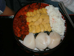 8/13おびら鰊番屋を出発。 オロロンラインを北上します。 オロロンラインは何にもないのが売りとのことですが、ほんとに何にもないです!コンビニ、信号はもちろん、民家も電柱もなんにもない!あるのは海と台地だけです!この広々とした海と台地にはさまれた道を延々と走ります。 ドライブやツーリングには最高の道ですね。 途中、ところどころ風車の銀座がありました。 途中見寄るところがほとんどなかったので、今日のイベントは海水浴です。羽幌というところで海水浴場があったので、そこで半日海水浴をしました。羽幌はオロロンラインの途中にある街ですが、海水浴場には予想以上の人が来ていました。海の中に台座やすべり台がある楽しい海水浴場でした。駐車場や屋根付きの場所が無料で使えるなど、良い設備が安く使えるさすが北海道の海水浴場です。北海道の人は皆さん浜にテントを張って海水浴するようですね。テントがたくさん並んでいました。水はそれほど冷たくなかったです。寒い日の茨城の海岸の方が冷たかったような感じでした。 海水浴を半日で切り上げ、オロロンラインをさらに北上します。街を出るとたちまち何にもない道が延々と続きます。ところどころある街がオアシスのようです。 オロロンラインの終盤、サロベツ原野に寄りました。中央付近にビジターセンターがあり、ビジターセンター周辺をぐるりと木の道があって、20〜30分くらいで周遊できます。見渡す限り草地の広々とした原野でした。利尻富士だけがひょこっと、とても島とは思えない感じでそびえたっています。 サロベツ原野を出て、さらにオロロンラインをすすみ、ついにノシャップ岬に到達しました。 ノシャップ岬では、今回の目玉「うに丼」を食べに樺太食堂に行きました。ここのうに丼は利尻昆布を食べて育ったうにがやまもり入った絶品だそうです。 北海道来るときは、いつも「うに丼を食べるぞ!」と意気込んで来るですが、到着して実際に店に入って値段を見ると、いつも「海鮮丼」に変更してしまうので、北海道でうに丼はいままで一度も食べたことがありません。今度こそ!と意を決してのれんをくぐったのでした。 ところが!メニューを見ると、メニューのところに大きく「うに不漁のためうに丼はお休みします!」との文字が!ガーン!不漁につき次回の漁までうに丼だけお休みとのこと。またしてもうに丼はおあずけになってしまったのでした! しかし、うに入りの五色丼は注文できるとのことで、 気を取り直して五色丼を注文することにしました。 五色丼のうにはほたてといくらとかにに幅寄せされて 窮屈そうですが、それでもありがたく、おいしくいただきました。いくらはプチプチ活きがよく、ほたてはやわらかでふかふか、かにはだしがきいていて、利尻昆布のうにはとろーりとても甘く、ほんとにおいじかったです。 うに丼は残念でしたが、北の幸を堪能させていただきました! 日帰り温泉「稚内温泉童夢」に入り、 稚内公園でP泊しました。 写真は稚内公園から稚内市内を望んだところです。 とおくサハリンはかすんで見えませんが、 夜になるとサハリンの明かりが驚くほど近くに見えます。 |