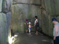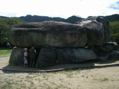 朝早く法隆寺に行きました。 奈良のお寺は早くから入れるところが多いようです。 東大寺も朝早くから見学できるようでしたが、法隆寺も朝早くから入ることができて、地元の方のお散歩コースになっているようです。(中の見学コースは8時からとのことでした。)私達も朝早く境内をお散歩しましたが、とてもきもち良かったです。静かできれいで、以前着た時とまた違った雰囲気でした。「柿食えば」の句にもなった有名な鐘のところに登って、奈良盆地を見渡しながら深呼吸したりして帰ってきました。 朝食をとった後、飛鳥の石舞台古墳の見学に行きました。私達は以前にもサイクリングで来たことがあったのですが、お気に入り場所だったので、じーじ、ばーばを連れて来てあげました。次に日本最古のお寺飛鳥寺にも行きました。以前来た時は大仏の前で説明を聞かせてくれたのですが、今回はなかったので、受付に行ってお願いしてみたところ、快く引き受けてくださり、私達のために講釈してくれました。奈良で見学する際はボランティアの方などの説明を聞くととても楽しく納得して見学できますね。子供はつまらなそうでしたが・・。 お昼は途中買った「柿の葉すし」のお弁当を食べました。ほのかに柿の葉の香りがしておいしいですね。子供にも好評だったので、まだ腹二分目くらいなのに割り当てがおしまいに。 また、途中「三輪そうめん」をお土産に買いました。買った三輪そうめんは「どっちの料理ショー」でも紹介された「吉野くず」入りのそうめんです。おいしいと評判のようですが、まだ食べてません。 お寺まわりで子供達がつまらなそうでしたので、午後は榛原にある「平成子供のもり公園 」へ行きました。グランド、キャンプ場、遊具などがある複合公園です。 恐竜のもりではフィールドアスレチック風の遊具で遊べます。また管理等では室内遊具も少々ありますので、この日は雨がふったりやんだりしてましたので、助かりました。たっぷり遊んだ後、ファミレスでご飯を食べて、定番の道の駅「あやま」でP泊しました。 道の駅「あやま」は名阪国道から10分くらいのところにある道の駅ですが、名阪国道から別世界の静けさでお気に入りの道の駅です。この日は星がとてもきれいでしたので、常備している簡易望遠鏡で久しぶりの天体観測しました。 翌日、蒲郡ラグーナ、用宗の広野公園などで休憩しながら埼玉へ帰りました。 |