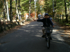軽井沢に紅葉狩りに行ってきました。 サイクリングしながらの紅葉狩りは格別でした。 前日の夜に横川SAでP泊。 朝一番で旧軽に出向き、浅野ブランシェという有名なパン屋さんで朝食と取りました。早朝なのにたくさんの人が買いに来てました。小さなカウンターもあって焼きたてパンをその場で食べられます。おいしいパンの焼きたては最高ですね。 朝食を終えたら、駅前に戻り、レンタサイクルのお店で自転車を借りて、サイクリングに出発! (レンタサイクルのお店でサイクリングコースが詳細に書かれた地図をもらえます。自転車のレンタル料はひとり\700〜\1200くらい。) ひろい歩道やあまり車のとおらない静かな道がサイクリングの道として指定されています。 静かな別荘地の中などが多く、とても雰囲気が良いです。 たまにおしゃれなお店などがあって、そのたびに寄り道してしまいます。 途中、万平ホテルでチャリティーバザールをやっていました。 骨董品や食器、イスなどホテルでいらなくなったと思われるいろいろな変り種商品が売られていて面白かったです。 カレーを売っているコーナーにたくさんの人が並んでいたので、いっしょに並んで食べてみました。 さすが由緒あるホテルのカレーは味が違います。 ルーから手作りと思われるカレーは、コクとうまみと甘さが絶妙にマッチした、とてもおいしいカレーでした。(これで\700は申し訳ないくらい。) 朝からカレーを食べてしまって、踏みつける足も重く再出発! その後、三笠会館、雲上池などを回りました。 雲上池は紅葉がちょううど見ごろで、鮮やかな赤や、黄色、オレンジなど紅葉と青い空ときれいな水がマッチしていてとてもきれいでした。 昼食は旧軽の腸詰屋でホットドッグを買って食べました。 本場のソーセージをつかったホットドッグは、ホットドッグの概念を変えるような衝撃的うまさでした。 ビッグサイズのソーセージは噛むとはじめるようにピチピチで、、はさんでるパンは申し訳なさそうなくらい小さく見えます。辛いのと普通のを食べましたが、私は普通のをおすすめです。 午後は軽井沢のショッピングモールで買物をしたり、芝生広場で遊んだりしました。 普段買いそびれていたジーパンをリーバイス専門アウトレットショップで買ったりしました。 夕食は佐久IC目の前の「おぎのや」で釜飯などを食べて、浅科で町営の温泉に入り、浅科の道の駅でP泊しました。 翌朝、軽井沢に戻り、鬼押し出し&火山博物館で遊びました。子供達は「石」のコレクションをやっているので、「石」のお店にだいぶ時間をかけました。 それからお昼に北軽井沢にある「パンカーラ」というお店に行きました。 街道沿いですが、紅葉の木立に囲まれた雰囲気のあるお店です。 お手ごろな価格でとてもおいしいランチなどを提供してくれます。(手作りパンのおかわりができました。) ディナーなどではお店で南米音楽の生演奏が聞けたりするそうです。 クリスマスなどによさそうですよ。 パンカーラを出発!近くの道端のお店でキャベツ、りんごなど嬬恋の高原野菜を買い込みました。 北軽井沢までくると草津までもうすぐです。 最後に草津の温泉に入って行くことにしました。 30〜40分で草津に。草津の西の河原露天風呂に入りました。昔は\200くらいで入れた記憶があったのですが、久しぶりに来たところ、脱衣所などが新しく整備され、お値段も大人\500くらいに値上がりしていました。それにしても安いお値段で、紅葉にかこまれた大きな露天風呂にゆっくりつかれて、極楽気分でした。 体をあたためたあと、草津を後にして一路埼玉へ。 高速の大渋滞を避けて、一般道で埼玉へ帰郷しました。 |