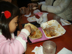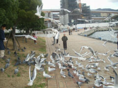 「お正月は久しぶりにまとまったお休み取れるね。」 「それじゃ出掛けようか?」 「実家へのご挨拶はどうする?」 「ならば、じーじ、ばーばも誘ってみよう!」 と両親引き連れて、お正月の旅に出発しました。 といってもお正月はどこもかしこも閉まっていて、 遊ぶところないかなあ?と不安を抱えながらの出発です。 12/30午後埼玉出発。 とりあえず、暖かそうな西へ向かって進みます。 三重県の道の駅あやまでP泊。 12/31大坂の街を散策。 なんばの駅近くに車をとめて、みなみを散歩しました。 大坂の街は「大晦日」も関係なくにぎわっています。 「なんば花月」やってました。(が入らず。) そのかわりにお隣りで「たこ焼き」を食べました。 行列できてるだけあって、めっちゃおいしいたこ焼きでした。 それから、西へ向かい神戸に寄りました。 神戸のメリケンパークにあるポートタワーに登りました。 展望台からは神戸港や六甲山などが一望できます。 「少しめまいが・・・」とおもったら 違う違う、強風でタワーが揺れているのでした。 この日は北風の強い寒い日でした。 展望台から港をみると、子供がえさをやっているようで ものすごい数の鳥たちに囲まれていました。というより埋もれてました。 港に下りて我々も真似してみることに。 公園の広場でお菓子をまいてみると港の手すりや屋根にとまっているのなど、 どこからともなく鳥が集まってきます。 あっという間に鳥だらけ。はとのようにおとなしくつつくのではなく、 はげしく奪いあったり、空中でホバリングして目の前に立ちはだかったり、怖いくらいでした。 こどもたちもお菓子を全部放り出して、走って退散してきました。 でも、観光客やお散歩の方がたくさん集まってきて、ちょっとスターになった気分でした。 鳥とたわむれた後で神戸を出発。 夕方、明石の「龍の湯」に行き、温泉につかって「今年最後の晩」を過ごしました。 |