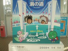 1/1 鳴門海峡大橋渦の道で「初日の出を見よう!」とのイベントがあるとのことで、 参加する計画を立てましたが、なんと寝坊! 初日の出どころか到着したのが9時。通常の営業時間でした。 日は高く、潮がとまっている時間で日の出も渦も見れませんでしたが、 お正月ということで「福引き」に参加できました。 子供が引いたらさっそく「当たり」、次にばーばもパパ、ママも「当たり」、 なんだ全部「当たり」かと思ったら、じーじだけが「はずれ」でした。 そしたら、お正月から「はずれ」じゃ幸先悪いからと係員さん。 当たるまで3回もくじを引かせていただきました。 結局全員当たりになりました。お正月っていいですね。 次に徳島の眉山へ行きました。 観たかった「阿波踊り会館」はお休みでしたが、 ロープウェイが運行しており、そのロープウェイでも「福引き」をやっておりました。 全員1回ずつ引かせていただいたところ、なんと子供達ふたりがたて続けに2等! 立派な名産のお土産をいただきました。ありがとうございました! 次に徳島の人形浄瑠璃を観に行きました。 お正月もやっているとのことで行きましたが、 他にお客さんが2名しかおらず、ほとんど貸切り状態。 こちらは団体のお客さんもよく来るようですが、 さすがにお正月は団体のお客さんが少ないようで、 団体のお客さんが行くようなところはお正月は案外狙い目かもしれません。 人形浄瑠璃を見た後、四国88箇所の一番札所の霊山寺に行って初詣をしました。 その後、高松の栗林公園に行って、公園の中のお店で「讃岐うどん」を食べました。 夕方、観音寺の「琴弾回廊」という温泉にゆっくりつかって元旦の晩を過ごしました。 |