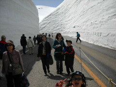 GWウィークに富山へ旅行に行きました。 久しぶりのキャンピングカー旅行です。 高速道路が¥1000になって、今年の旅行は大渋滞が予想されていました。 そんな中でも、キャンピングカーは混雑を避けて旅行ができます。 キャンピングカーに乗ってみて、 これはたいへん大きなメリットであると私達は感じています。 5/2(土)は朝から渋滞が予想されていましたので、前日の夜に出発。 最初の目的地黒部に向かいました。 高速道路は混雑はしてたものの、まだ渋滞はありませんでした。 黒部の扇沢駐車場はGW中8時ころには満車になるとのことでしたので、 私達は夜中に到着し、そのままP泊して朝を待ちました。 GW期間中は各乗物の待ち時間が1時間以上にもなるとのことでしたので、 朝一番に上(室堂)まで登って混雑前に帰ってくる作戦をたてました。 最初にチケット買うのに30分並んだ甲斐があり、各乗り物1番に乗ることができ、 スムーズに8時すぎに頂上の室堂に降り立つことができました。 室堂は想像以上の壮大さと雪の量でした。 雪の大谷では積雪の最高地点では15mにもなるのとこと。 下界では半そでで過ごしていたのでびっくりです。 無料貸出しのそりも最初に借りることができ、しばらくソリ遊びもしました。 10時過ぎになるとたいへん混雑してきました。 午後になると帰りの乗物がかなり待つとんことでしたので、 11時過ぎに室堂を出発。黒部ダムまで降りました。 黒部ダムの放水は6月からとのことで、やってませんでしたが、 息をのむ高さと曲線美でダムだけでも十分迫力ありますね。 休憩所でやっている無料の紹介ビデオは面白くまた勉強になりました。 帰りのトロリーバスは輸送力があるので、たくさん人が並んでいましたが、 待たずに乗れることができました。 15時すぎくらいに扇沢駐車場へ戻りました。 小谷の道の駅で入浴し、食事をとりました。 |