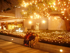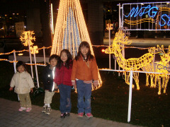 12/3(土) 何も計画はしていなかったのですが、 家内と子どもがクリスマスツリーを見に行きたいというので、 土曜の夕方に近所のお子様連れて、幕張へ出発しました。 TVチャンピオンの「日本一のイルミネーション」の決勝戦の舞台にもなっていたので、もしかしたらまだ飾ってあるのではと期待して出発! 12月ともなるとあちこちできれいに電飾してあって、夜のドライブはとても楽しいですね。途中通った中山競馬場は特にきれいでした。 (後で調べたところ中山競馬場の電飾は名物とのこと。) 夜のドライブは目的地の海浜幕張に到着。海浜幕張駅近くの駐車場に車を停めて、附近を1時間くらいお散歩しました。 TVチャンピオンの「日本一のイルミネーション」は残念ながら見つかりませんでしたが、 海浜幕張周辺ではホテルやショッピングモールがそれぞれ クリスマスの飾りつけをしていて、とてもきれいでした。 ロッテリアのポテトをつまみ食いしながら、あっち、こっちで写真をとりました。こども達も歩きつかれてきたところで終了。 それから、1時間半くらい海岸沿いにすすんで、 木更津の鳥居崎海浜公園駐車場でP泊しました。 木更津のP泊地は房総族の溜まり場ではと心配しましたが、 釣り客が何人か夜釣りをしている程度で、とても静かなところでした。 入口に標識などがないため、少しわかりづらいですが、 地図を見て「この辺だ!」と信念をもって進んだらありました。 |